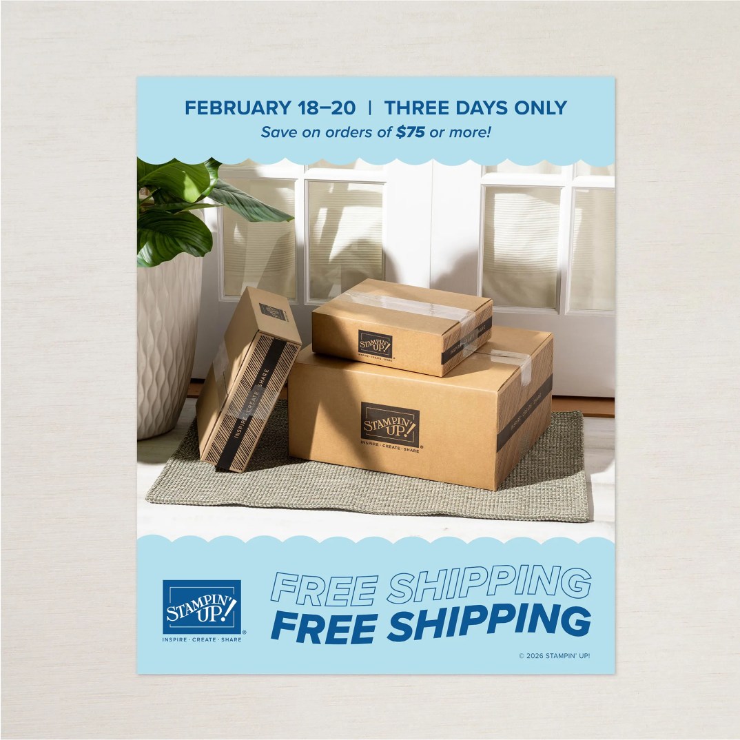 | Hi Stampers! Wednesday through Friday, February 18 – 20, Stampin’ Up! is offering FREE SHIPPING on orders of $75 or more. $75 is the magic number this month. When your order hits $75: FREE Shipping (Wednesday –Friday only) Cash in your Bonus Days codes from your last month’s orders if you made one! The option to purchase this month’s Product of the Month for just $5 Use any Stampin’ Rewards you have accumulated Don’t forget to check the LAST CHANCE category when shopping – lots of retiring products and great deals. |
