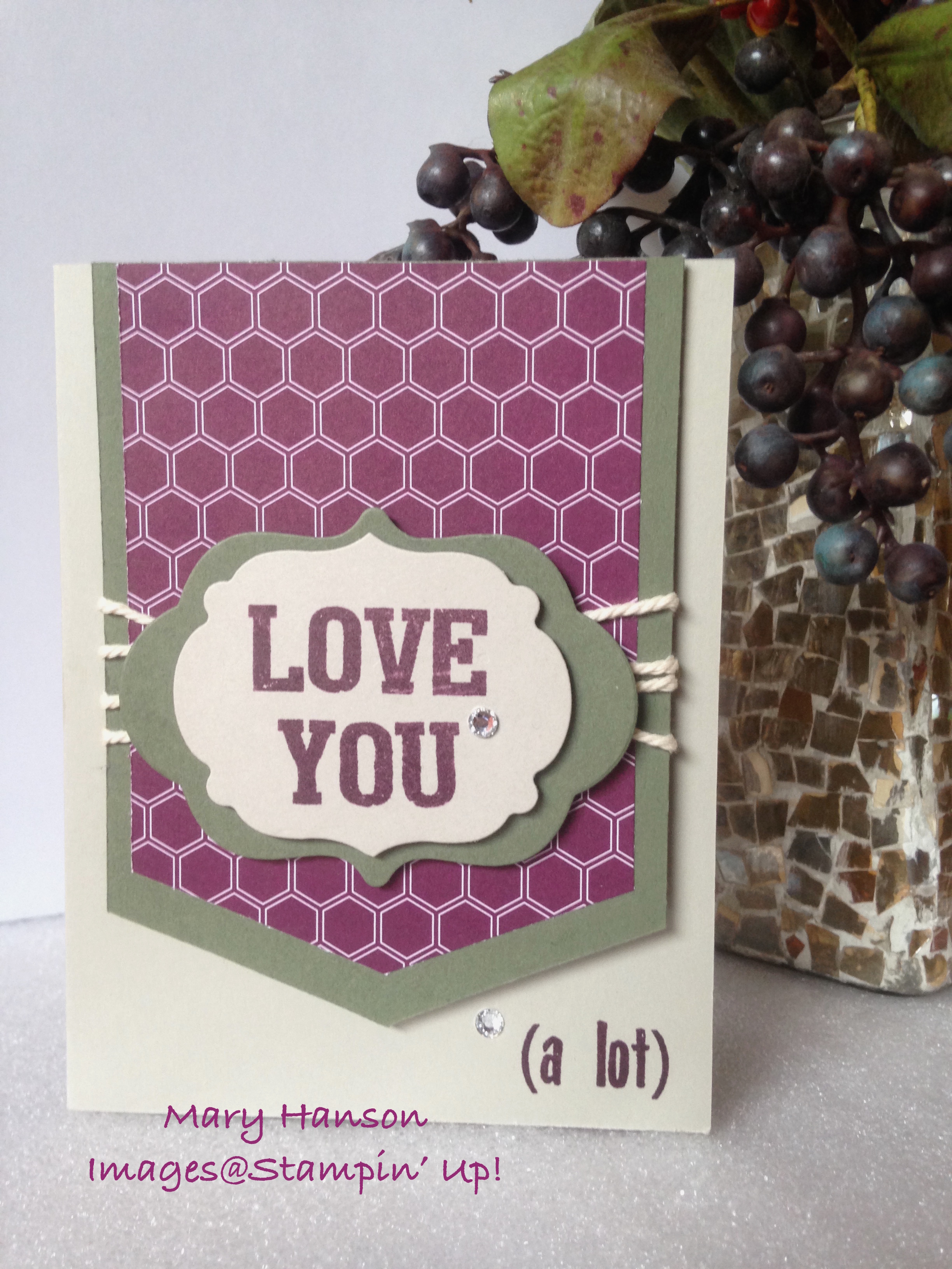 I was intrigued with the color combination of the beautiful Stampin’ Up! colors of Blackberry Bliss, Sahara Sand, and Always Artichoke, so thought it would be fun to play along with this challenge. Last Sunday, 9/27, was a special day for my husband and I — an anniversary of sorts — that we celebrate every year. So I made this card for him!