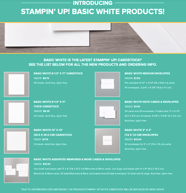 Rest assured that Stampin’ Up! will be providing with a beautiful new set of white paper products!
