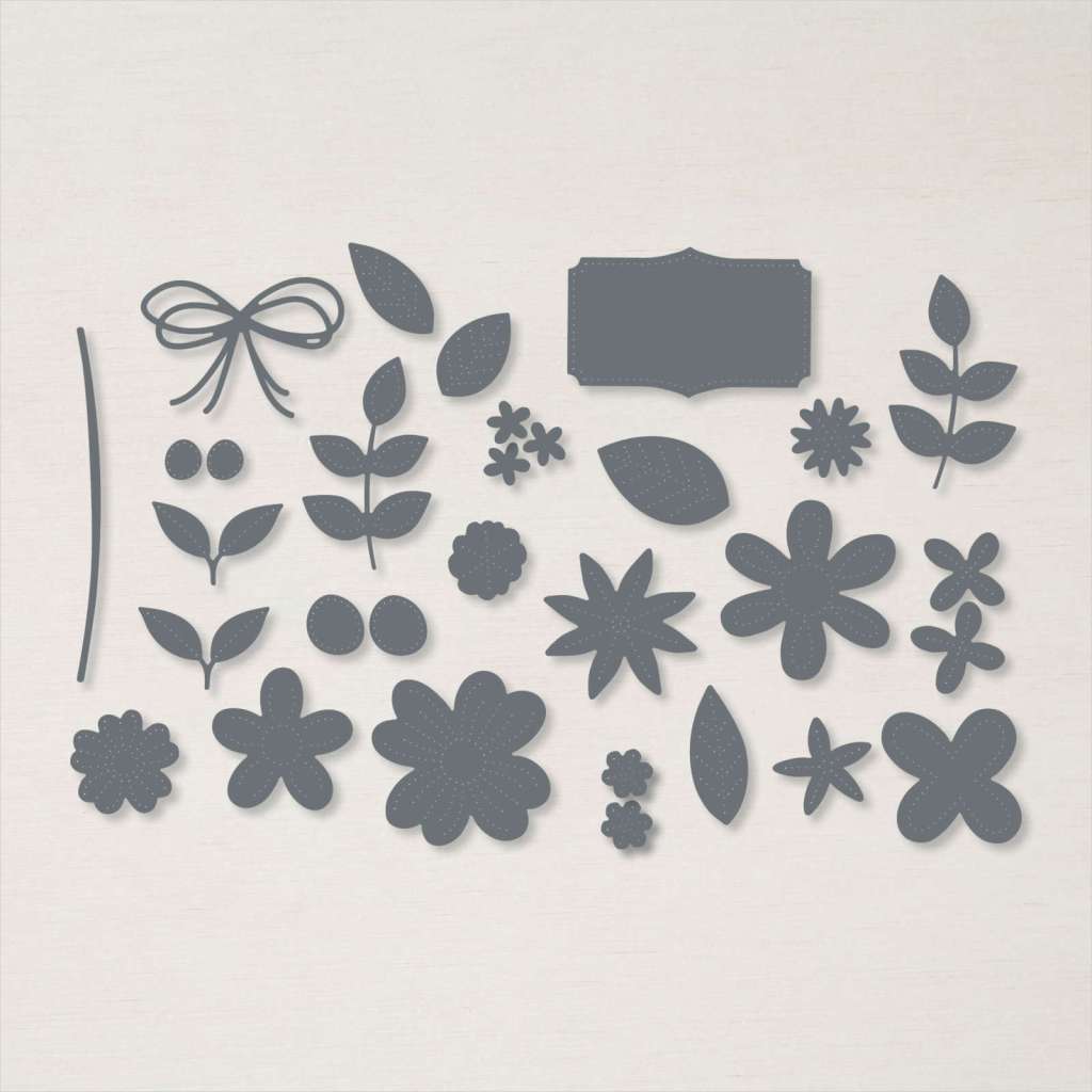 These dies make the cutest flower and leaf stitched shapes – and they fall out of the dies so easily. You can quickly make a project, or many projects with a few runs through your die cutting machine!