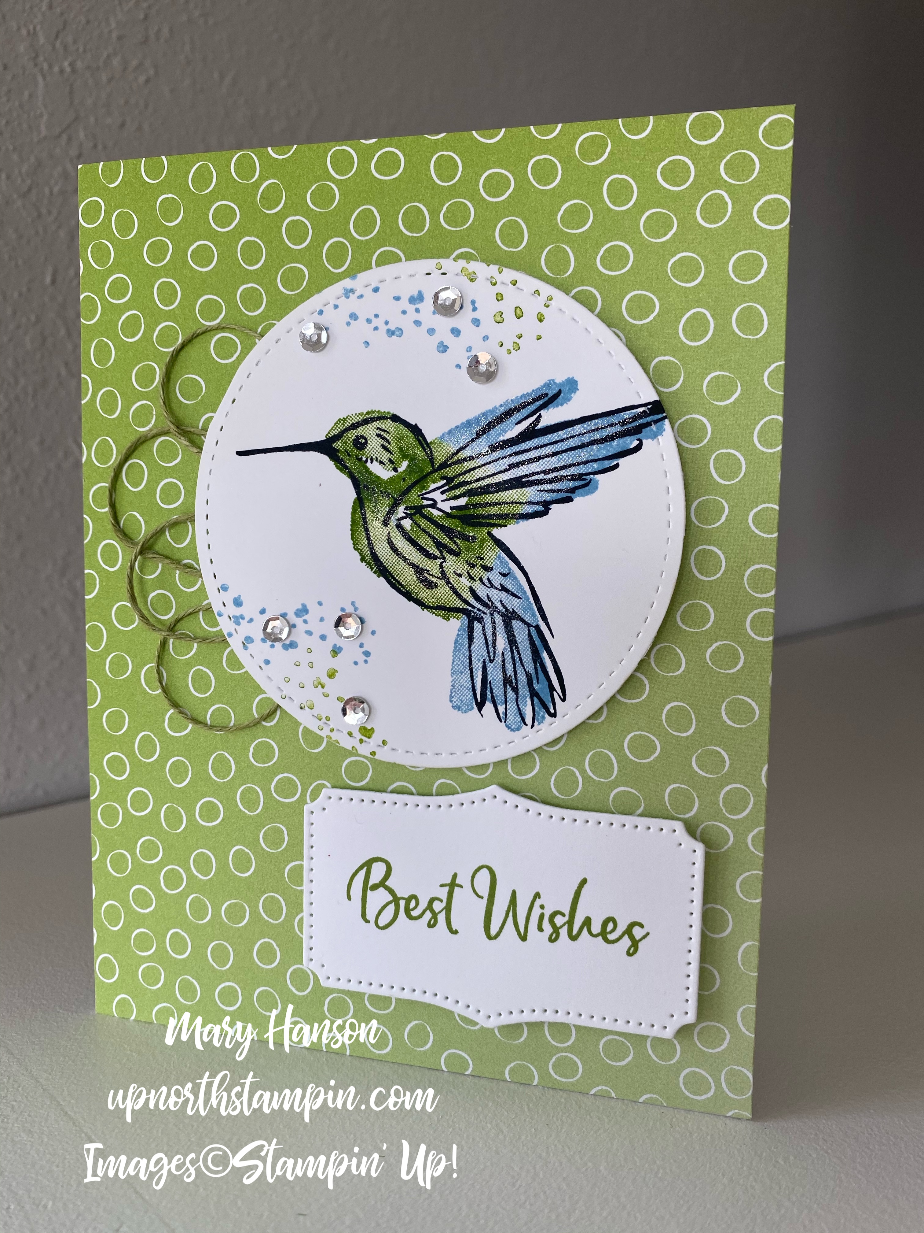 The two-step stamps in this stamp set helped me create the beautiful hummingbird, and the flower and leaves were created with our Stampin’ Blends — love to work with them!