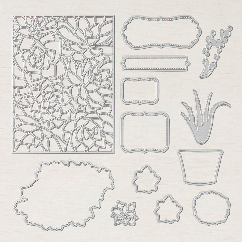 The Simply Succulents Bundle includes the Simply Succulents Stamp Set and the Potted Succulents Dies. The stamp set has lush succulent images that are perfect for coloring, along with positive sentiments that you’ll use all year long. The bundle includes dies to cut out accent pieces and labels. It even has a large die sized to fit a card front. This bundle has it all!