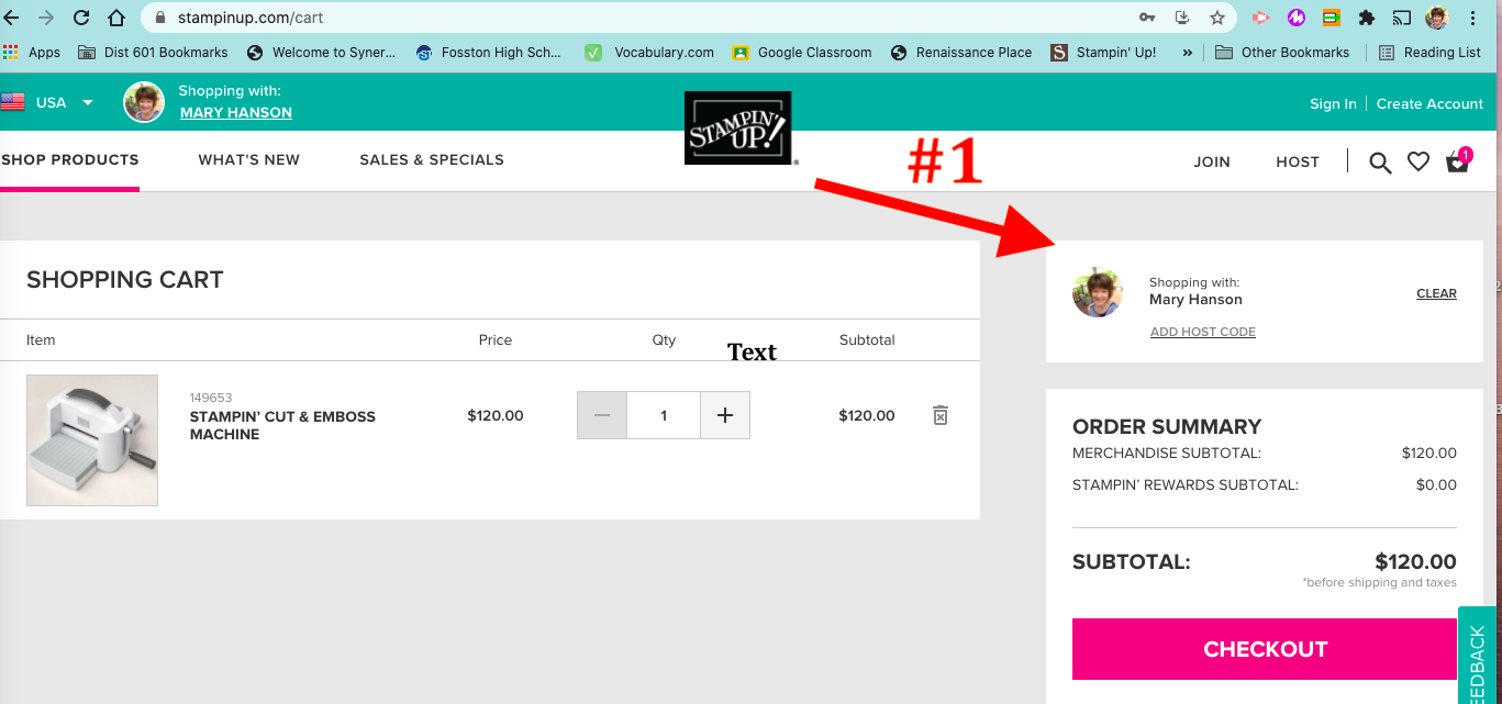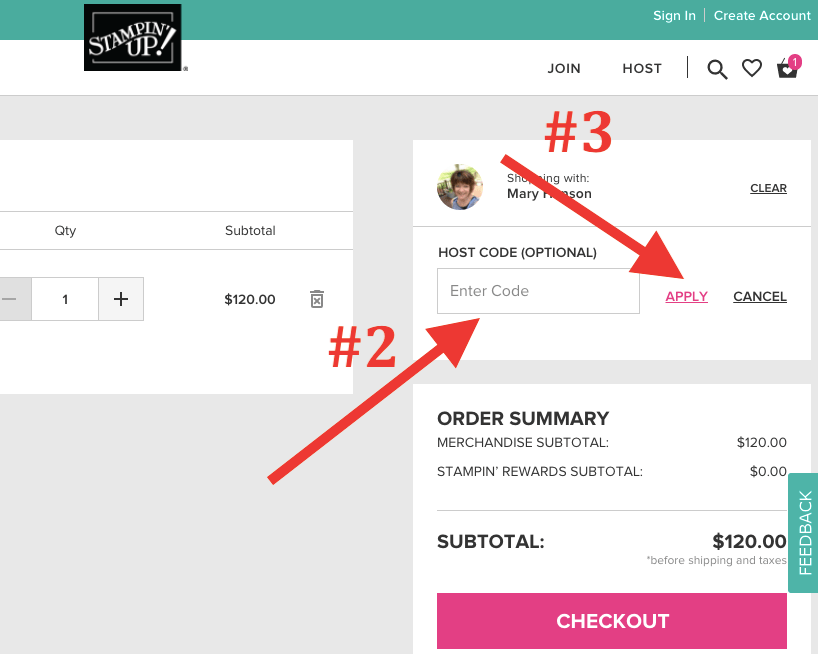 Once you get to the Shopping Card before checkout, here’s how you apply the Host Code: