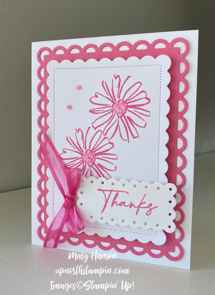 2. If you make an online order this month of $50 or over, you will receive a brand new 3/8″ Open Weave Ribbon in the In-Color of your choice! This ribbon is so pretty, and easy to work with! Here it is in the new Polish Pink with the fabulous Color and Contour Bundle: