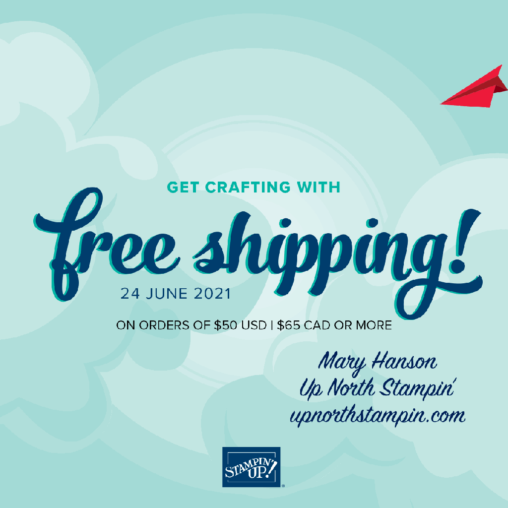 YAY!!!! Stampin’ Up! just notified us that they’ll be offering FREE shipping on all orders of $50+ placed on Thursday, June 24!!