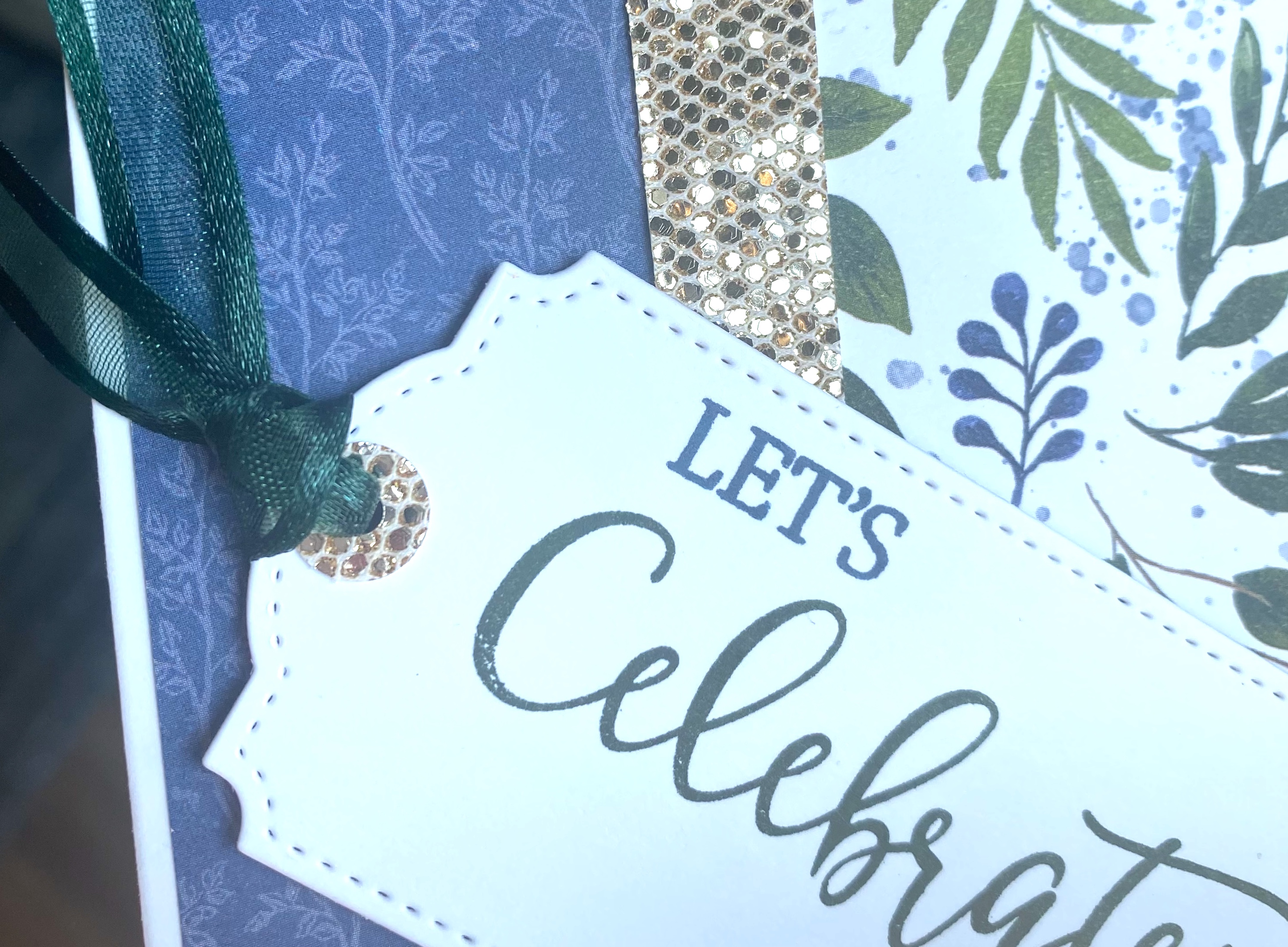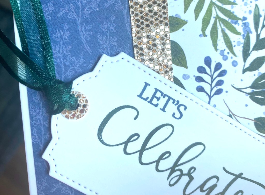 The sentiment layer was created using the Tailor Made Tags dies — I LOVE them — they create many different-sized tags along with the darling little grommet shapes that you can put around the hole in the tag! For your info, I used the largest of the top set of tags to create my sentiment.
