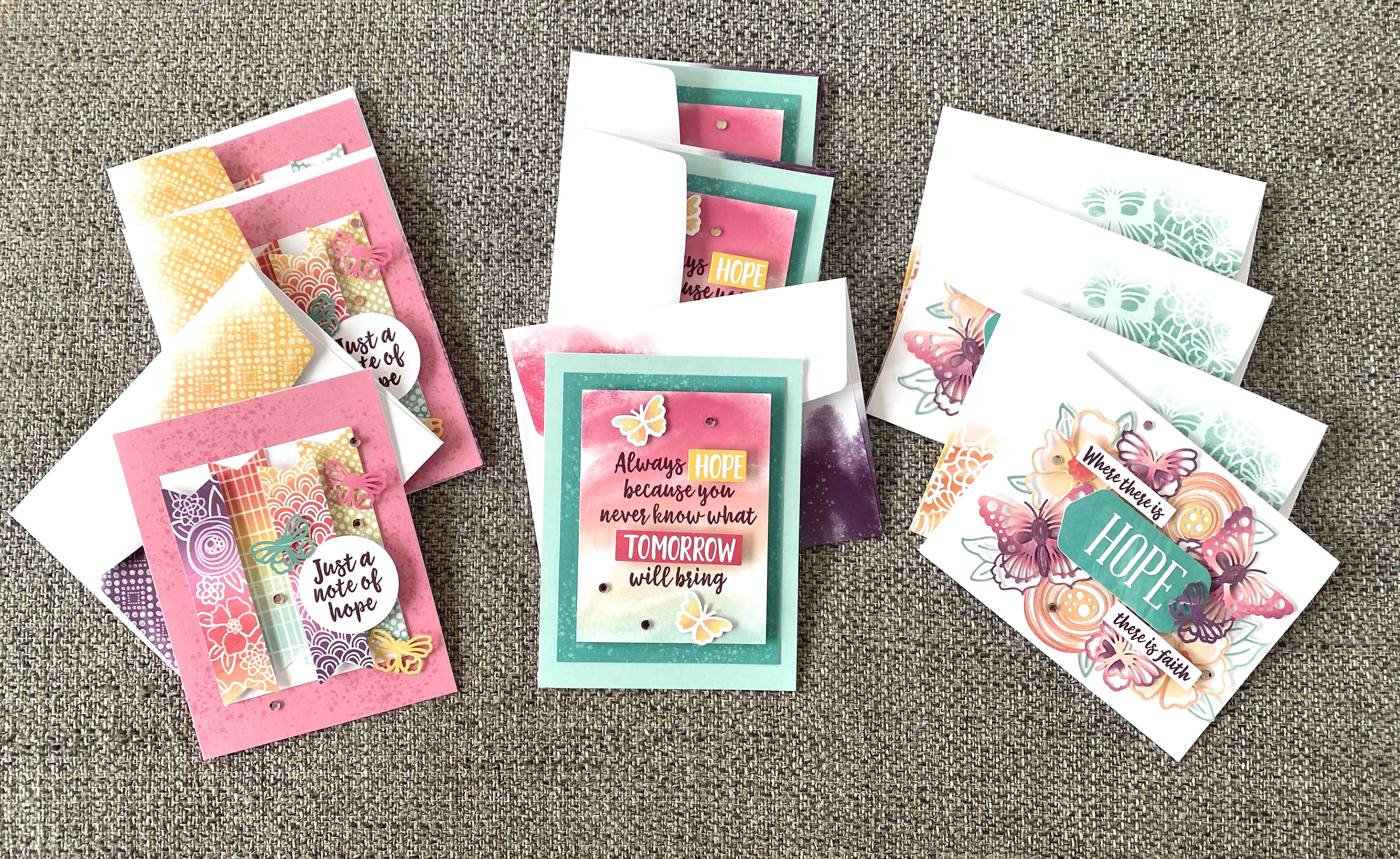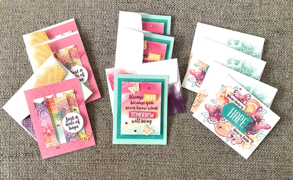 The Hope Box Paper Pumpkin Kit was inspired by Stampin’ Up! cofounder, Shelli Gardner, whose vision was to add more hope into the world—a goal that needs the help of our global Stampin’ Up! community to complete. So, get ready to empower yourself and others with the Hope Box Paper Pumpkin Kit! This one-of-a-kind Paper Pumpkin kit includes enough supplies to create nine encouraging cards and coordinating envelopes in an inspiring color palette and a specially designed Hope Box!