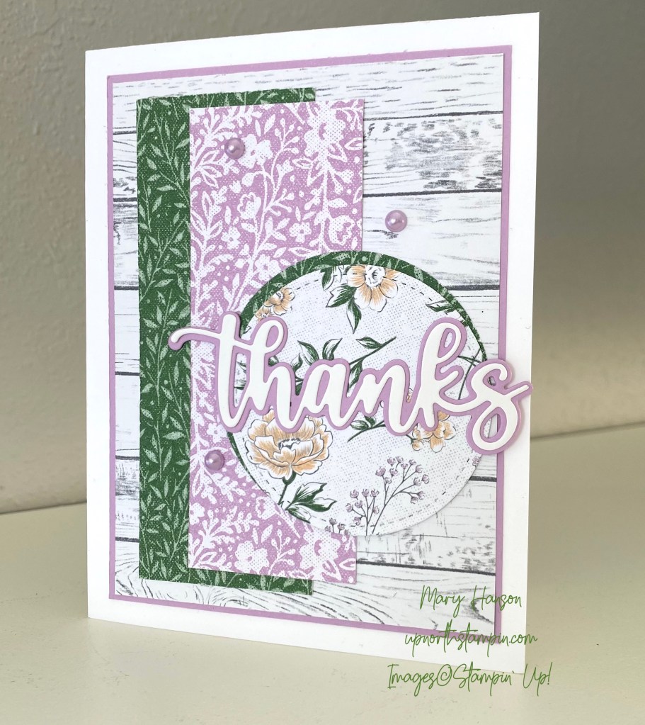 I used the Amazing Thanks dies and the beautiful Heart & Home Designer Series Papers to create a soft and pretty thank-you card. Thanks to Crafty Cards by Amanda for the inspiration.