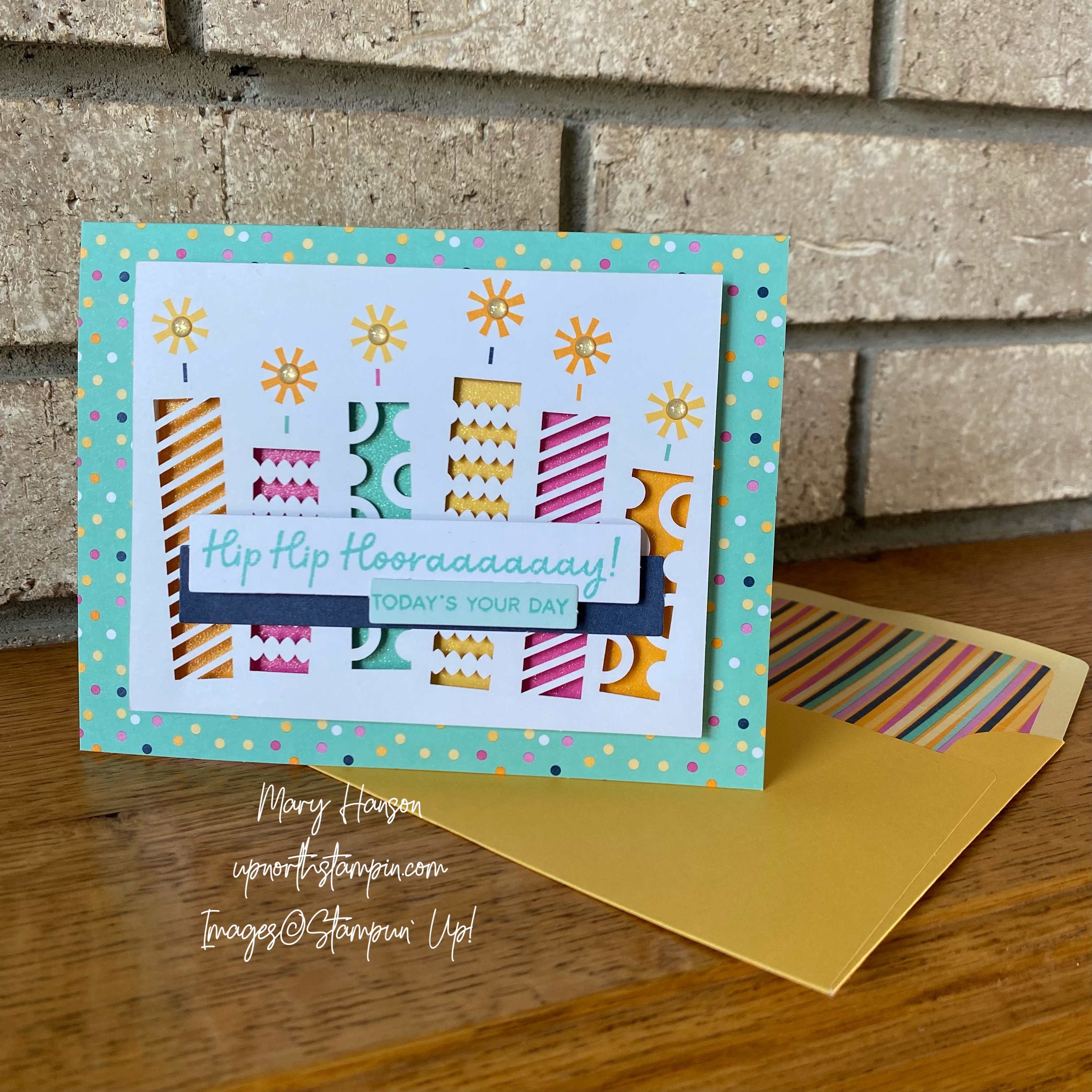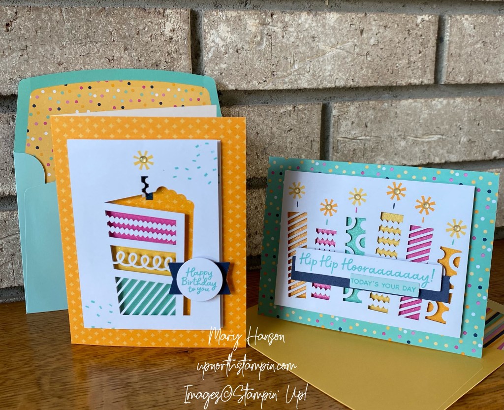 When I think of birthday cards, I think of the adorable and bright cards you’ll make in the Light the Candles Kit from Stampin’ Up! This fun Birthday Card kit has everything you need in the cute little box to create EIGHT birthday cards with coordinating envelopes (four each of two different designs)! The sparkly and bright 3D cards will be appropriate for all the birthday people in your life. Imagine the pleasure you’ll get when you send a darling high-quality, and HANDMADE card!