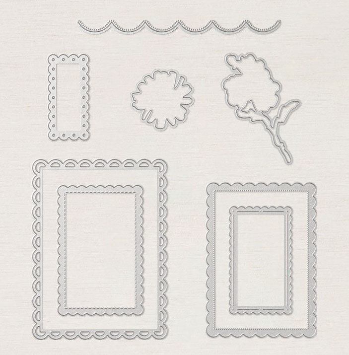 Speaking of bonuses, the Scalloped Contours Dies included in this bundle have floral shapes that coordinate perfectly with the stamps. But I think the biggest bonus of all are the scalloped border dies. I’ve used these dies for tags, labels, card fronts, scrapbooking—honestly, it’s my go-to for everything. These dies are the secret ingredient to elevating any card, tag, label, and scrapbook page.