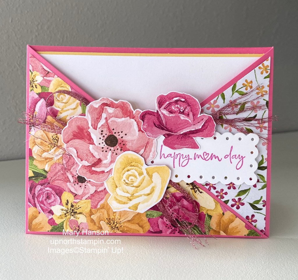 Finally! We can now order from the new Stampin’ Up! Annual Catalog! My first purchase was the Hues of Happiness Suite Collection, and one of my first cards with this beautiful collection was a card for my mom on Mother’s Day.