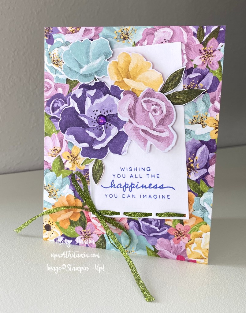 We are having fun with all the lovely new products in the new Stampin’ Up! Catalog. Hues of Happiness was the first Collection I ordered. Here’s a project for an upcoming wedding we are attending: