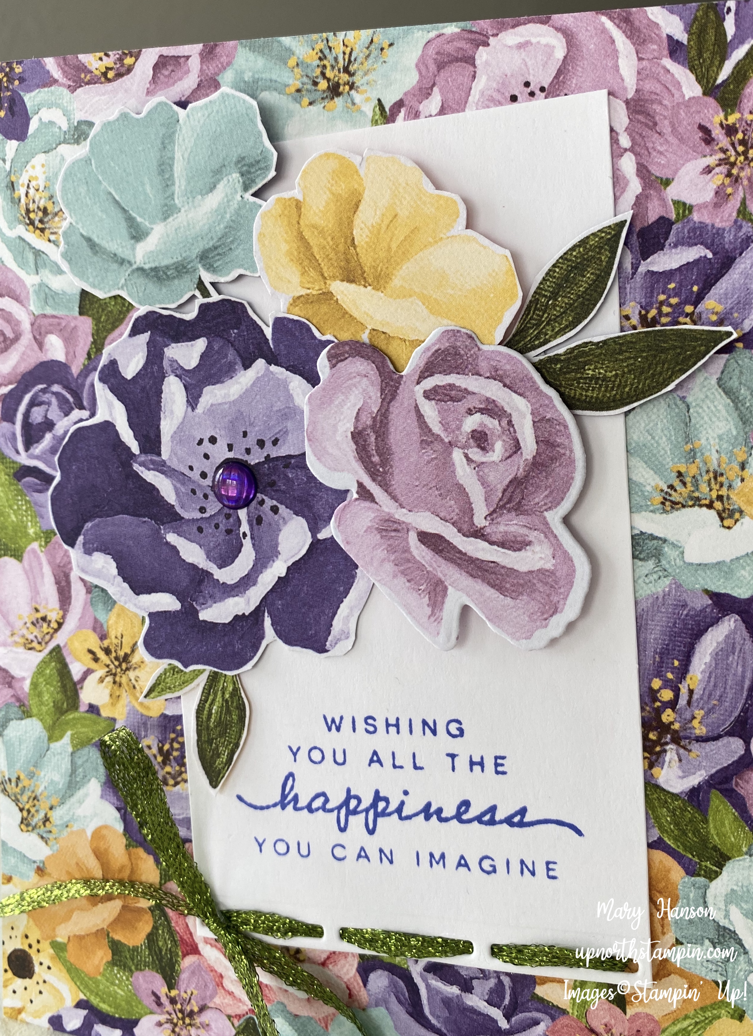 The sentiment is from the Hues of Happiness stamp set, stamped in Orchid Oasis. See below for all the products I used. Each product takes you directly to my website!