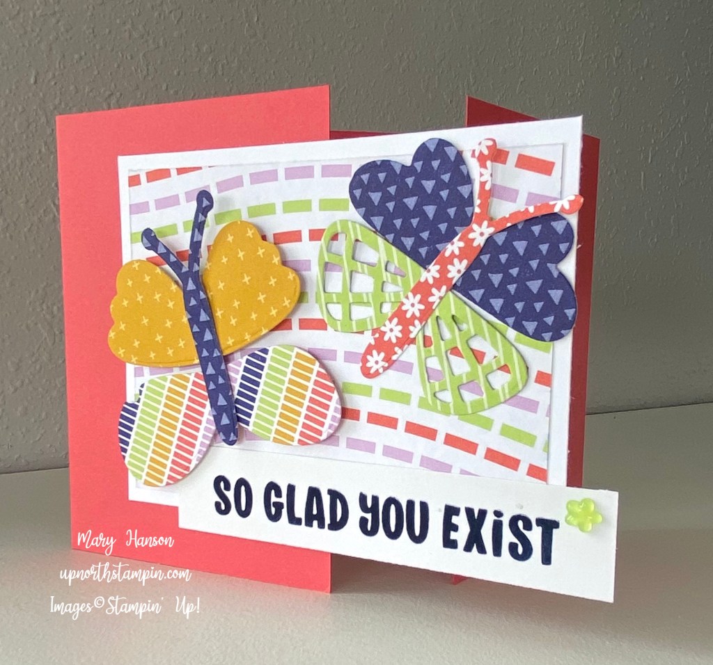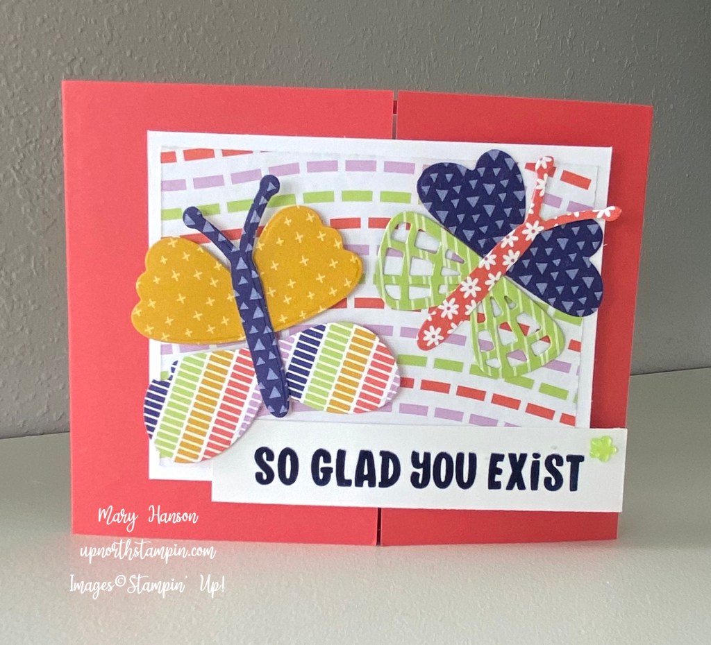 From the first time I opened the new Stampin’ Up! Annual Catalog, I knew the Butterfly Kisses Suite Collection was for me! Yes, the ENTIRE collection! The colors, the patterns, and OH — the sweet butterflies! Here’s my first card, a gate fold card, made for my upcoming club. I’ll show you the entire suite below, but first: