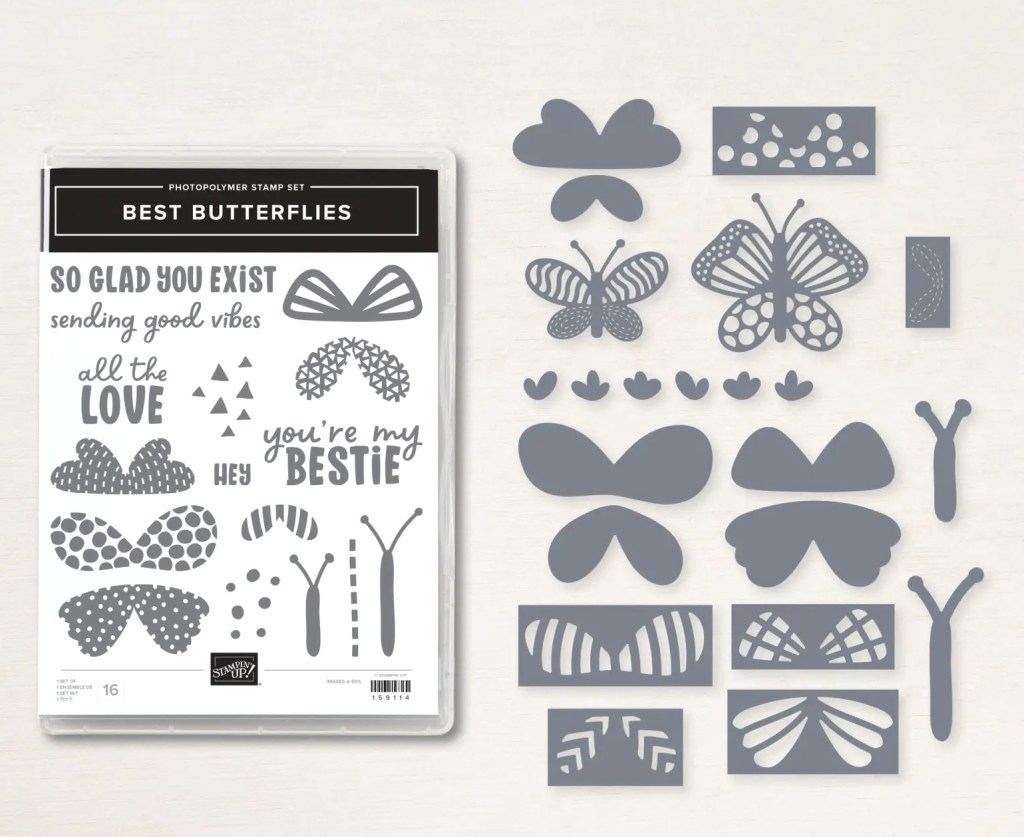 I will be using these absolutely adorable butterflies all summer – they’re modern and fresh, and there are so many options that you can build, both stamping and die cutting.