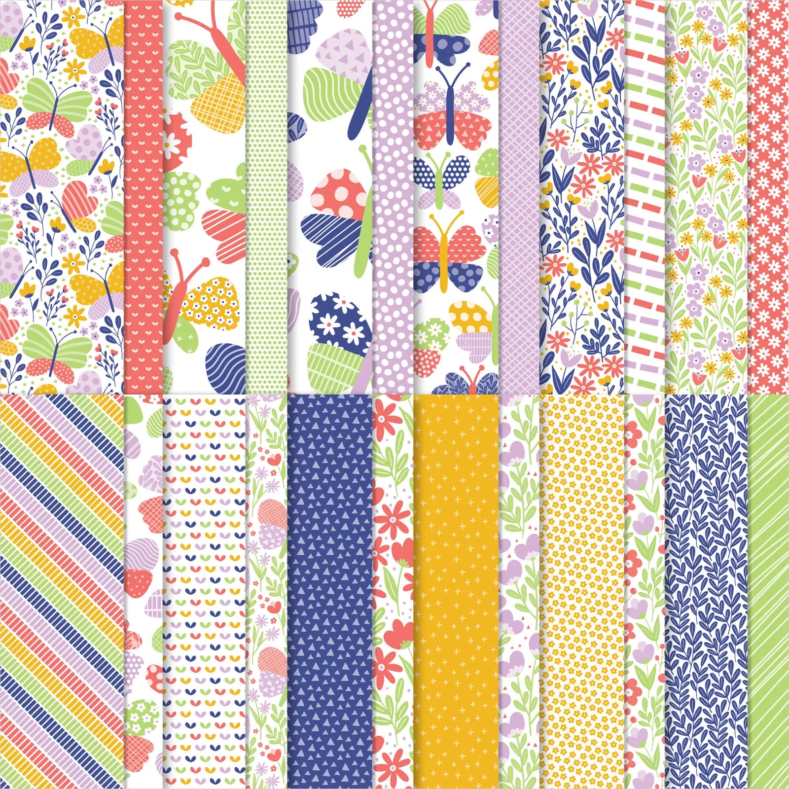 The Designer Series Papers, which come in 6 x 6″ pieces, are the cutest! These colors are so bright and modern!