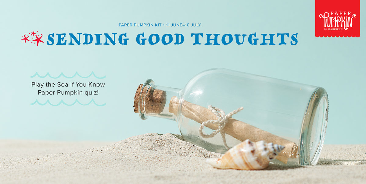 We also have a special game for you to play—take part in the “Sea if You Know” Paper Pumpkin quiz to learn more about Paper Pumpkin and this month’s kit! Plus, subscribers to the “Sending Good Thoughts” Paper Pumpkin Kit will be entered to win a 1-month prepaid Paper Pumpkin code! Demonstrators can also play the quiz and all active subscribers (demonstrators included) are eligible to win the prize.