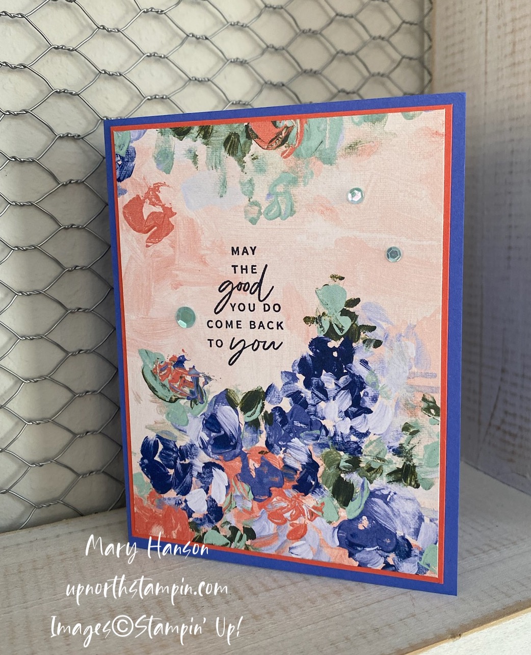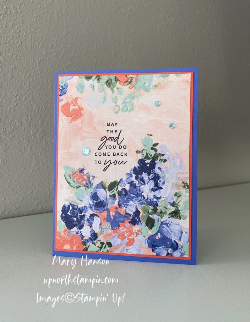 With the lovely new set of Designer Series Papers called Fancy Flora by Stampin’ Up!, creating BOTH gorgeous AND easy cards happens naturally. Here are some projects I made recently. What do you think?