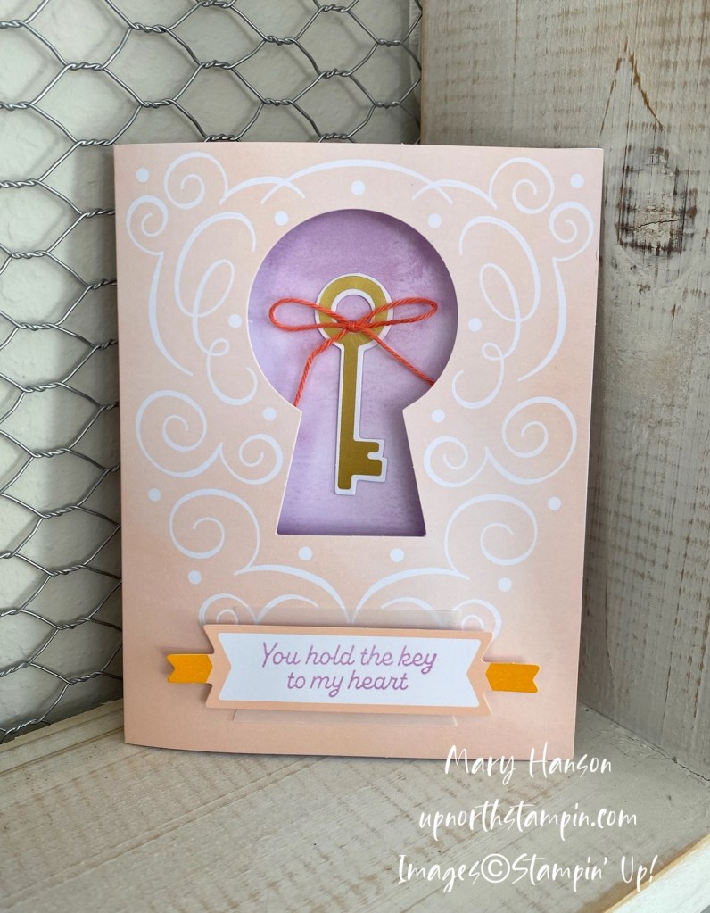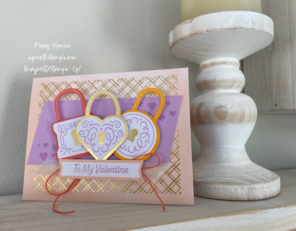 I am wishing each and every one of you a Happy Valentines Day, full of love and laughter! Today I’m sending you three cards that comprised the January Key to my Heart Paper Pumpkin Kit. The kit includes nine unique cards—three each of three designs—and nine coordinating envelopes that you can fill with love! The kit represents the tradition of locking a padlock on a bridge to symbolize unbreakable love. So, no matter who your dance partner or dinner date is on Valentine’s Day, these cards are for you! Here are the three cards I made from the kit: