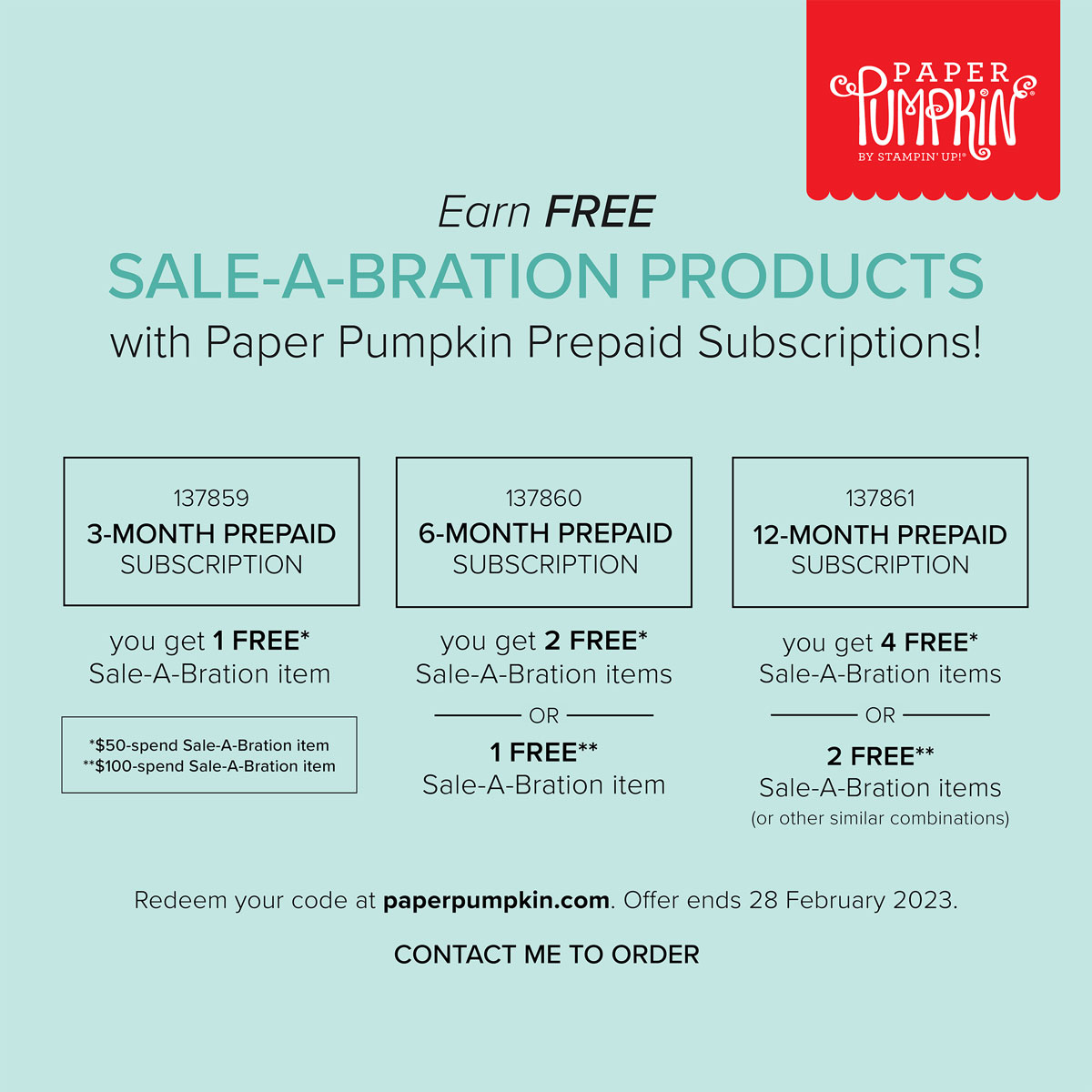 But wait! Sale-A-Bration is the BEST time to purchase a Pre-Paid Subscription because of the free gifts you can receive. Take a look!
