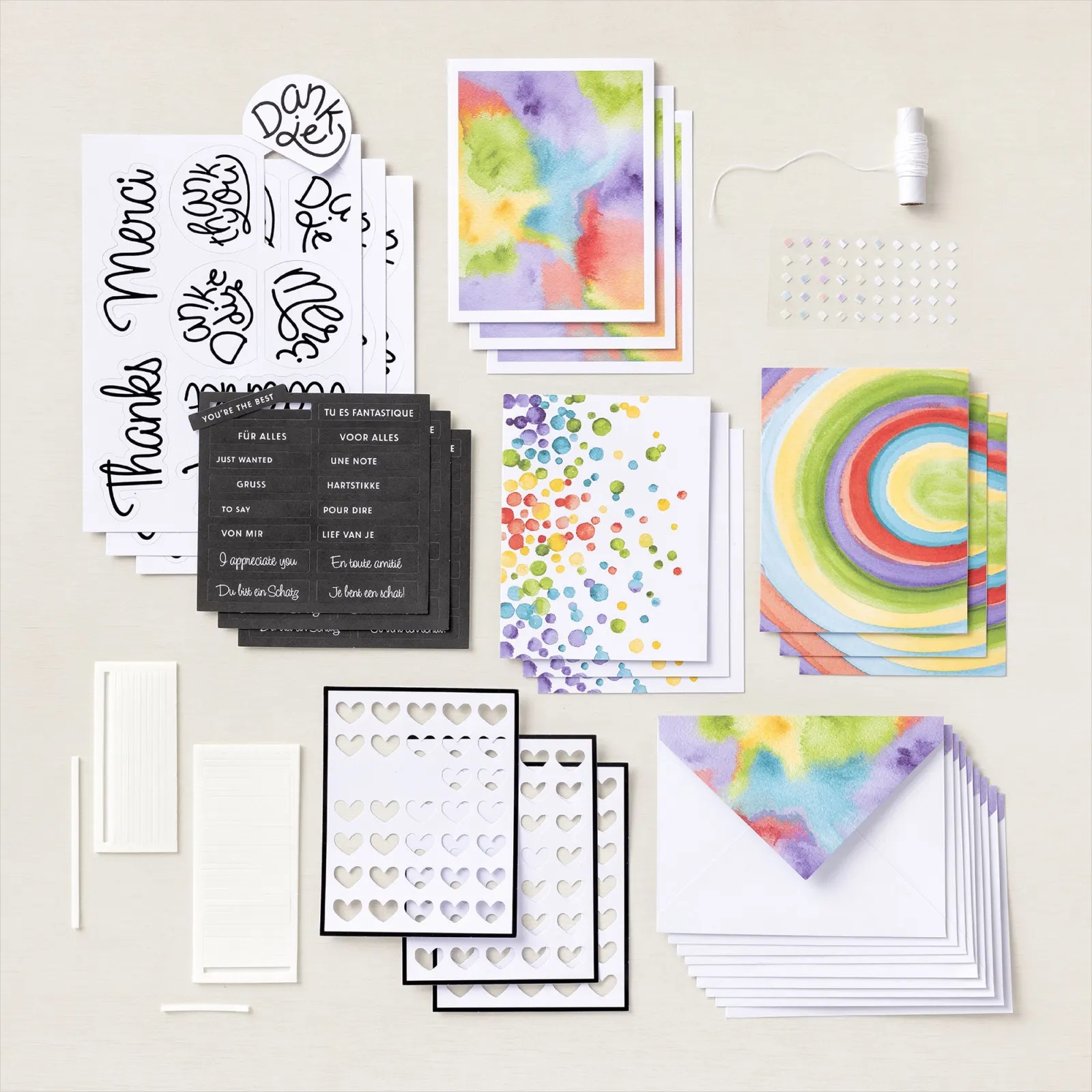 I’m back with another idea for a fun evening of papercrafting — the new Saying Thanks kit. The kit provides everything you need to make nine cards, three of three different designs!