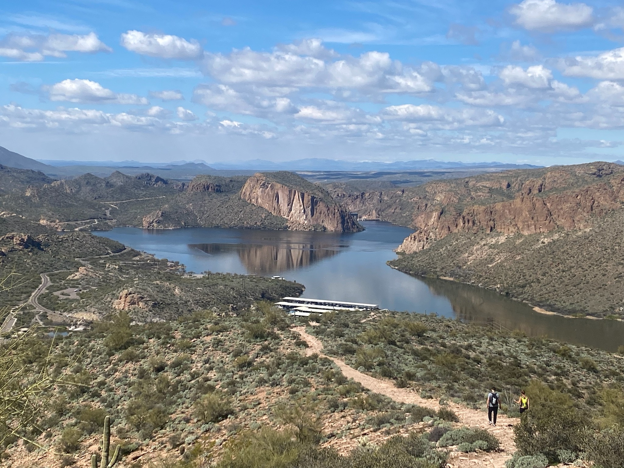 Hi, Stampers! We are wrapping up our month in Arizona with a week in Gold Canyon. We love it here! Today we took a five-mile hike on the Boulder Canyon Trail, where we saw beautiful rock formations and the lovely high elevation Canyon Lake!