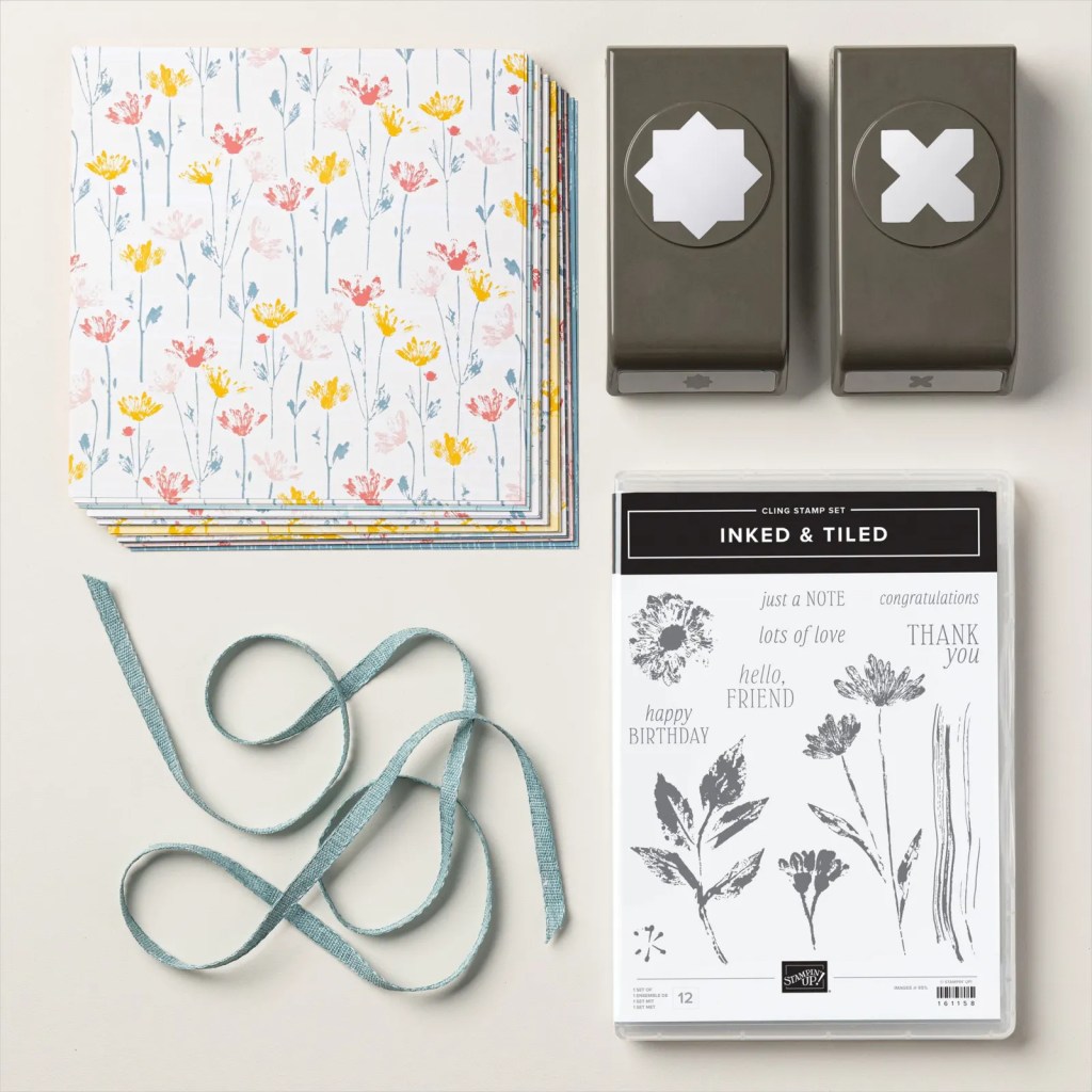 I love the punches that go with this suite. In addition, the Inked Botanicals Suite has it all: a gorgeously watercolor stamp set, BEAUTIFUL designer papers, a lovely coordinating ribbon, and dies.