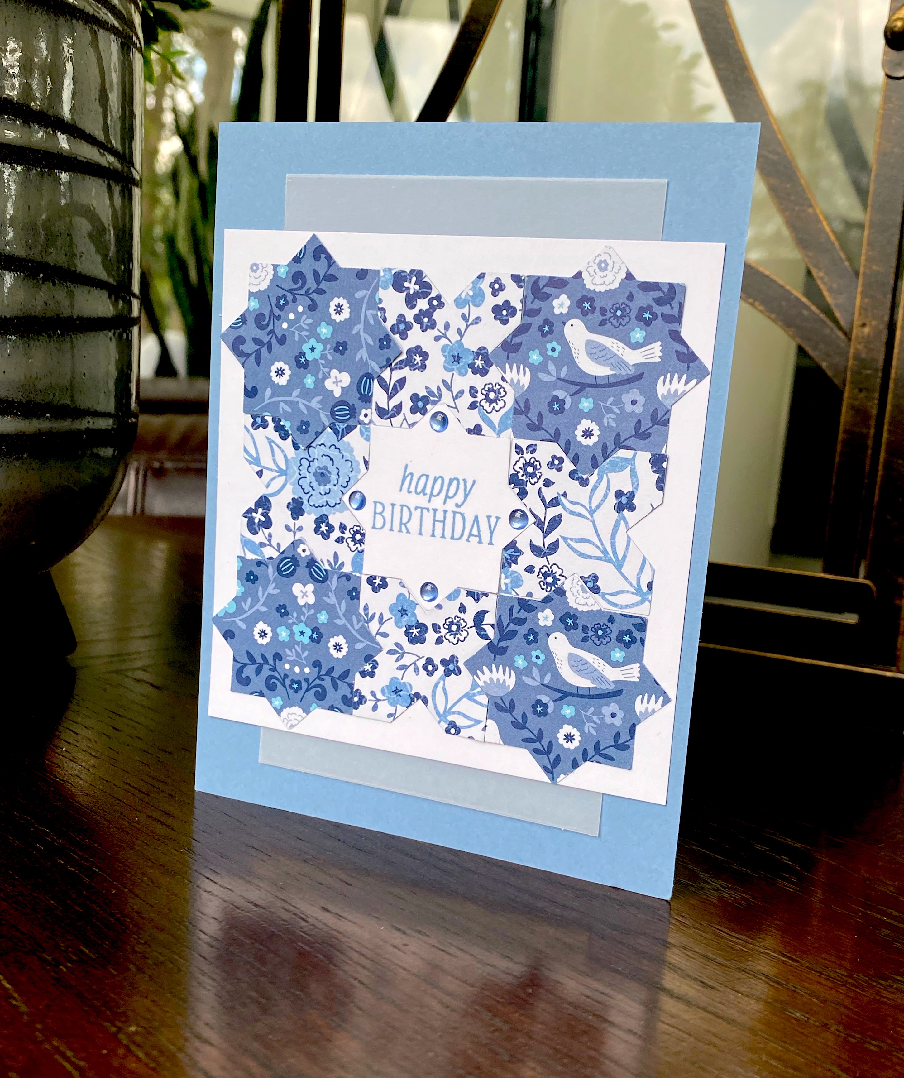 I love the Countryside Inn Designer Series Papers — they make this card so easy because of all the beautiful coordinating blue designs you can choose from. Here they are: