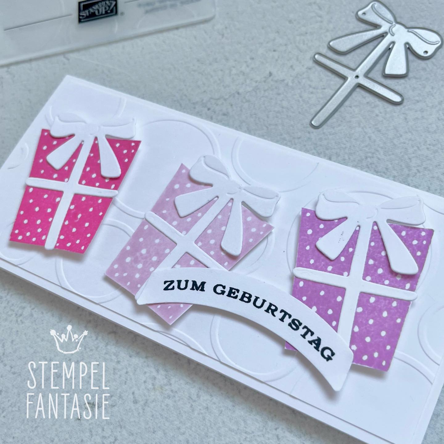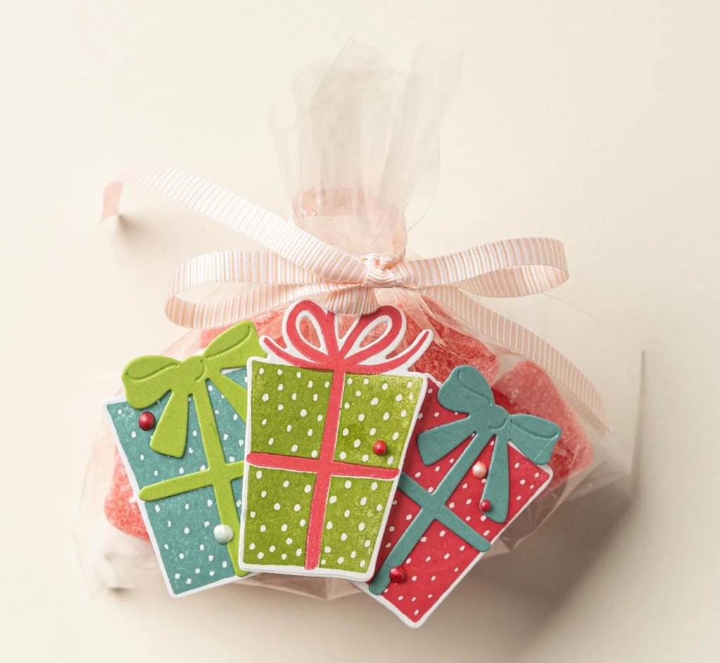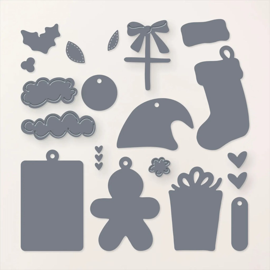 I’ve seen so many cute samples using this bundle — you can create darling tags, fun and bold shapes, and I love the fun fonts in the stamp set!