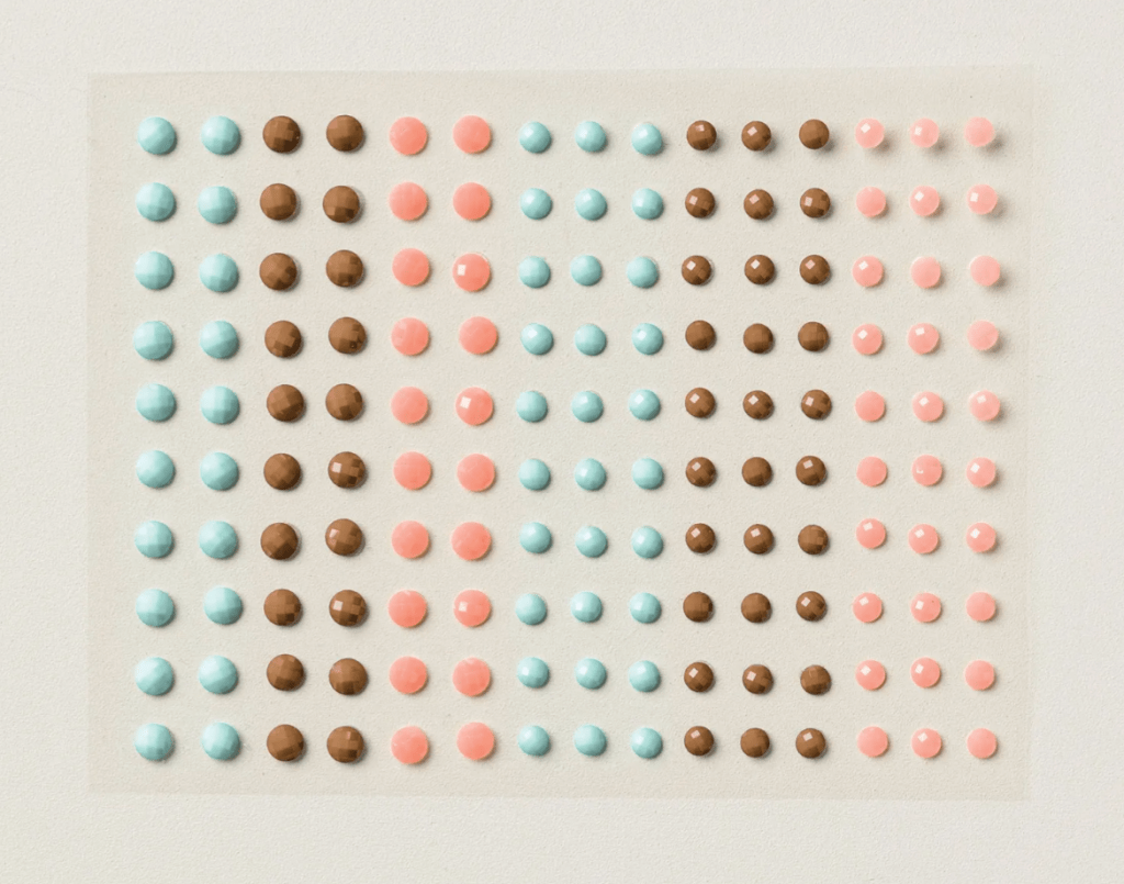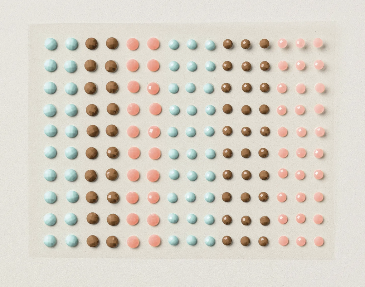This set of cute gems contains 150 adhesive-backed pieces, 50 each of 3 colors: Calypso Coral, Pecan Pie, and Pool Party. Think of all the ways you will use these!
