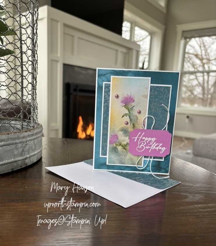 I recently took part in the May Crafty Collaborations Virtual Swap. The theme of the swap was “New Products,” so I created a card featuring the new and beautiful “Thoughtful Journey” Designer Series Papers, as well as the “Thoughtful Designs” Specialty Designer Papers. Here is my project from the swap: