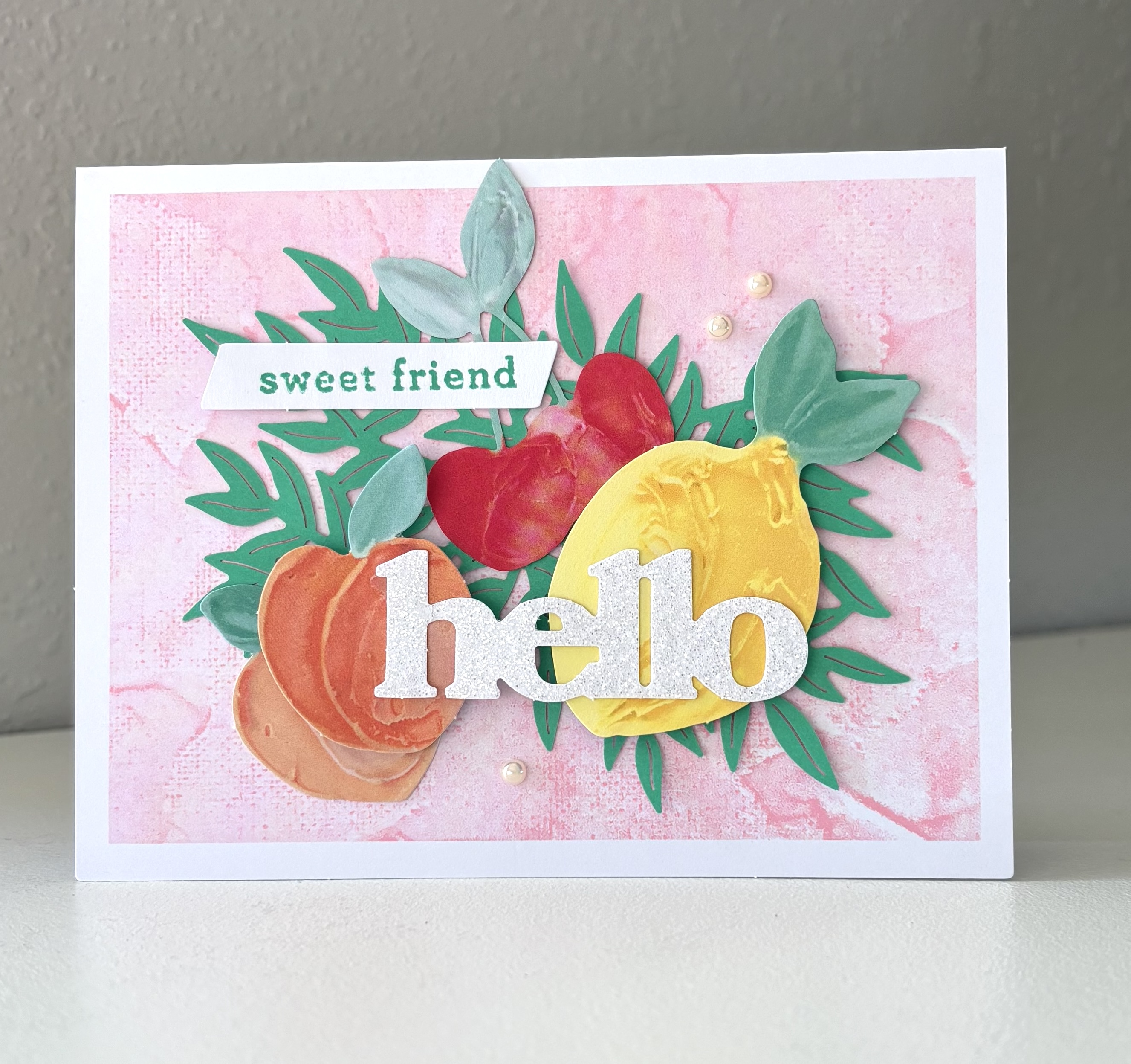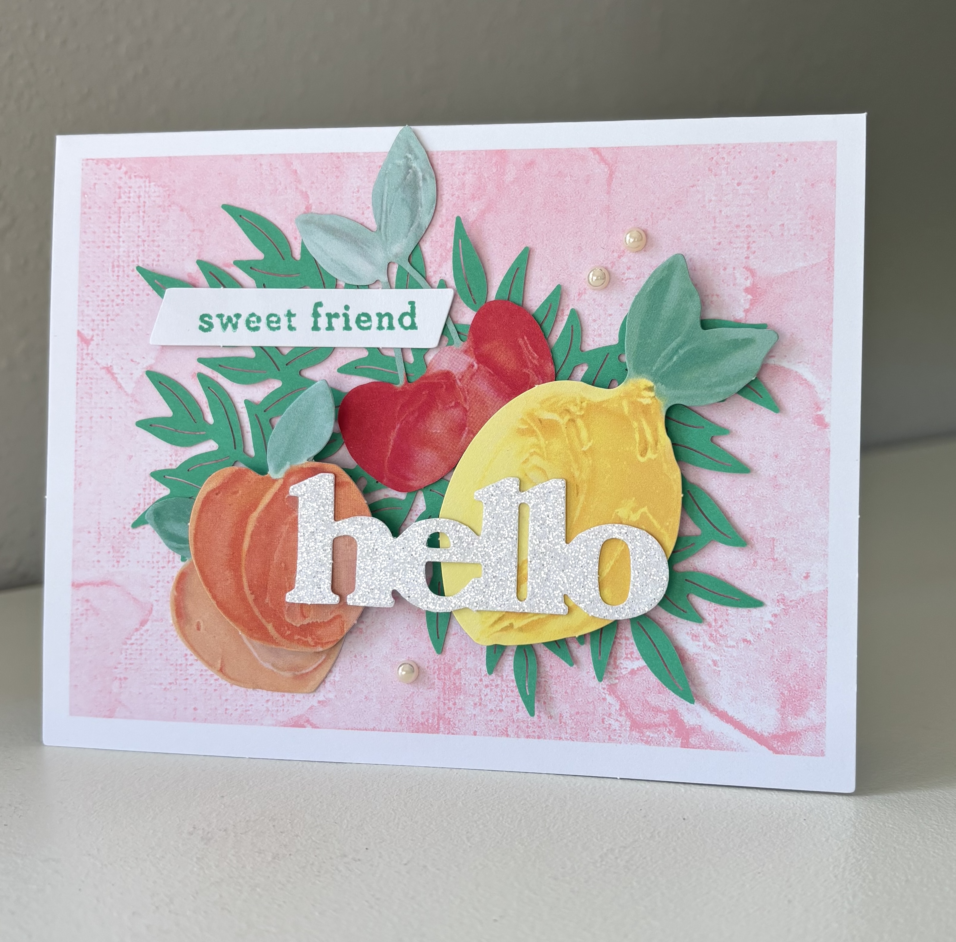 I had a bushel of fun creating the June Paper Pumpkin kit! It was full of ingredients to make nine beautiful cards, complete with watercolor fruit images and sparkly glitter sentiments! I had fun mixing and matching all the ingredients and adding to the nine card bases. Here are some of the cards I made!