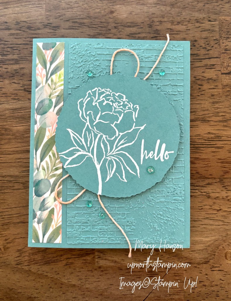 I recently took part in the June Crafty Collaborations Virtual Swap. It’s peony season up here in Northern Minnesota, so I decided to create a card using the Poised Peony Stamp Set.