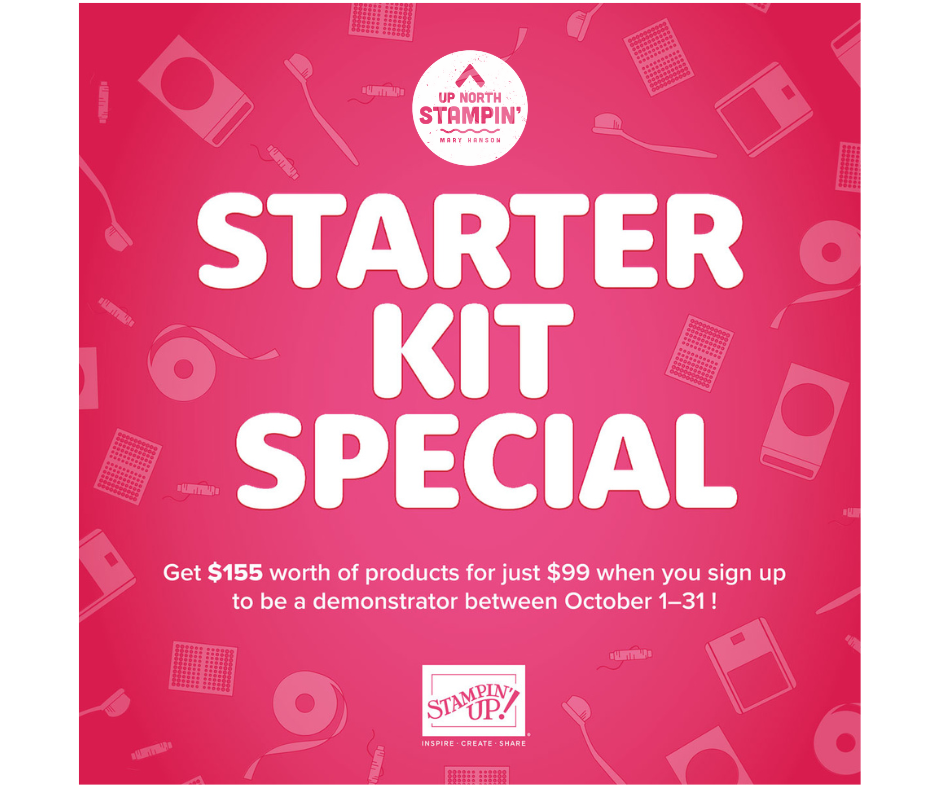 Stampin’ Up! has a fantastic offer for anyone who becomes a demonstrator! Join my team between October 1–31 and you can choose $155 worth of product in your Starter Kit for only $99! Starter Kits normally include $125 worth of product for $99, so that’s an extra $30 worth of product at no additional cost. This offering also includes free shipping, PLUS a free Paper Pumpkin kit! It is truly the Ultimate Bundle!