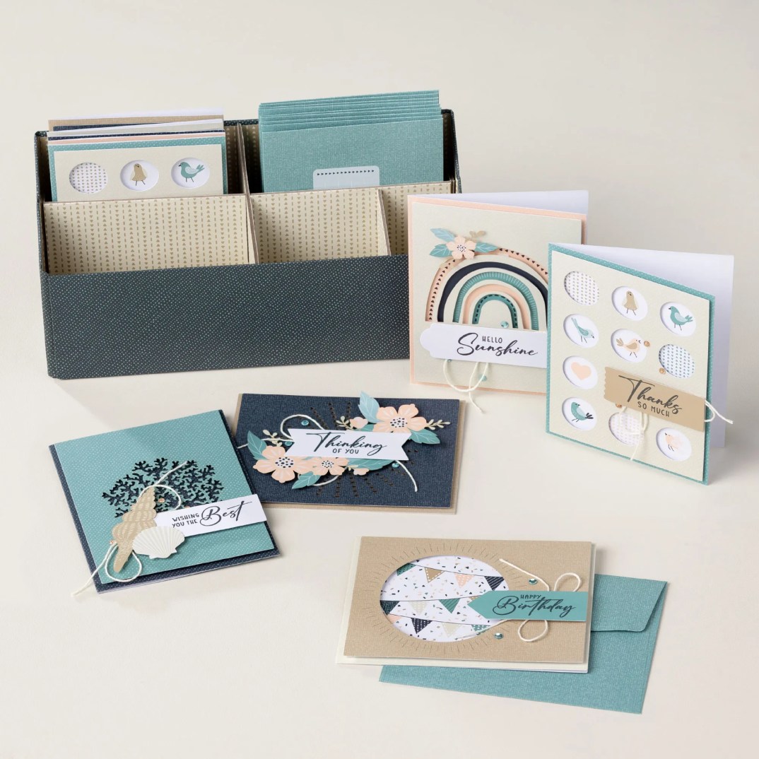 The creative demonstrations during the event will be using the new Handmade & Heartfelt Kit (166213, $32), an all-inclusive kit with everything you need to make 10 lovely, all-occasion cards and a card organizer for storage.