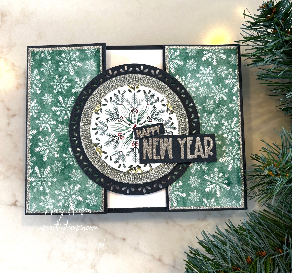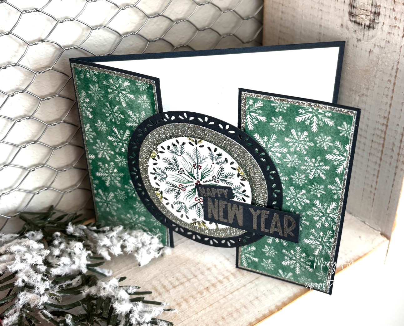 1. So pretty and very elegant! I love it! The fun fold is one of my favorites and I like that you did it in “landscape.” Thanks for joining the blog hop this month! It’s been a great year of hops. Happy Holidays!