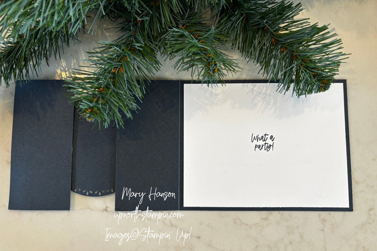 7. Stamp the inside of the card, making sure to get the words in the middle of the panel if you don’t want them to show from the front.