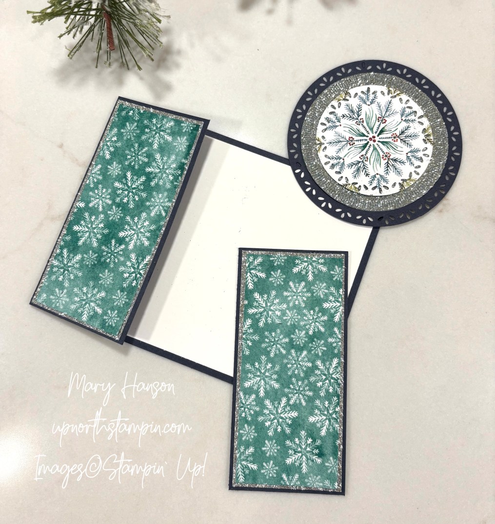 ● Elegant Pines Snowflakes Designer Series Paper: Two pieces cut at 1 ¾” x 4”