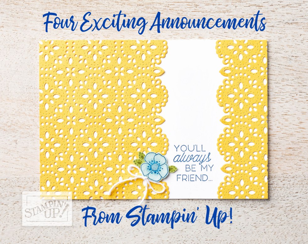 Online ordering from Stampin’ Up!’s 2019 Annual Catalog will go live at 1:00pm CST on Tuesday, June 4. At that time, I’ll also be able to post the new catalog online, so you will see it here. Let me know if you still need a free catalog.