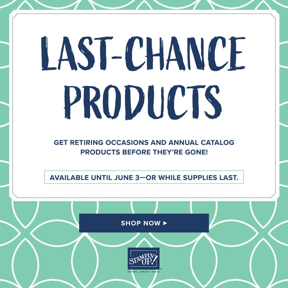 I wanted to bring you some news from Stampin’ Up! so that you’ll be on the cutting edge of “in-the-know!” As you’re aware, we’re headed into the transition time between catalogs. So…we’re anticipating the arrival of the 2019-2020 Retiring List – watch for it on 15 April (that’s next Monday!)